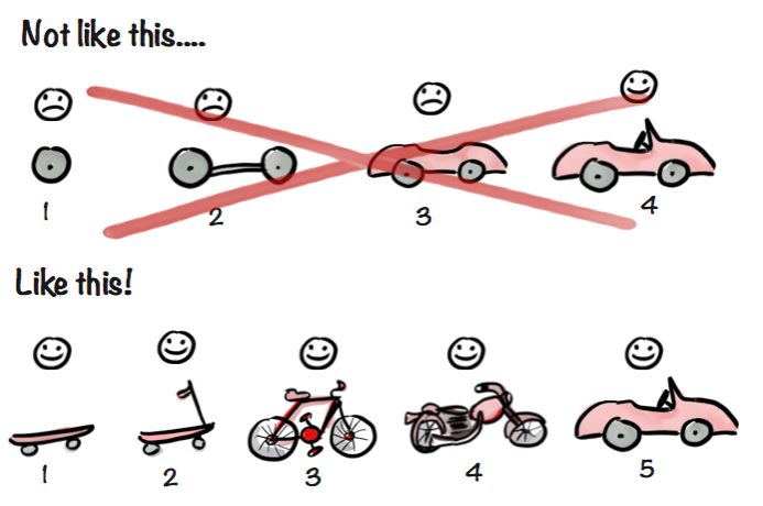 So, what makes a good MVP? Start simple. Rather than going into excruciating detail explaining this, I’ll show you a drawing. I did not come up with this drawing, but I have never seen anything that explains what a good MVP so accurately. I stole this from http://speckyboy.com/ which is a fantastic resource, and I highly recommend you check them out.