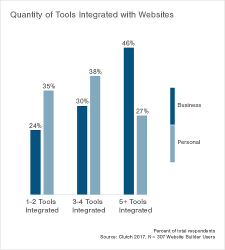 Later on in the survey, we learn that 46% of businesses are integrating 5 or more plugins to build the features that they need for their website. Clutch infers that these people are using these web builders to solve the need for a complex website for their business. The other 54% of business are using between 1 and 4 plugins and are running a simpler solution for their business.