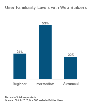 A little over half of those surveyed self-identified as intermediate users of these platforms, being able to set up a site and customize it using the more advanced features that are offered without any assistance. It’s no surprise to us, after using the backend of WordPress or Squarespace for a little while, that navigating to all the various features and options on these builders becomes easy quickly.